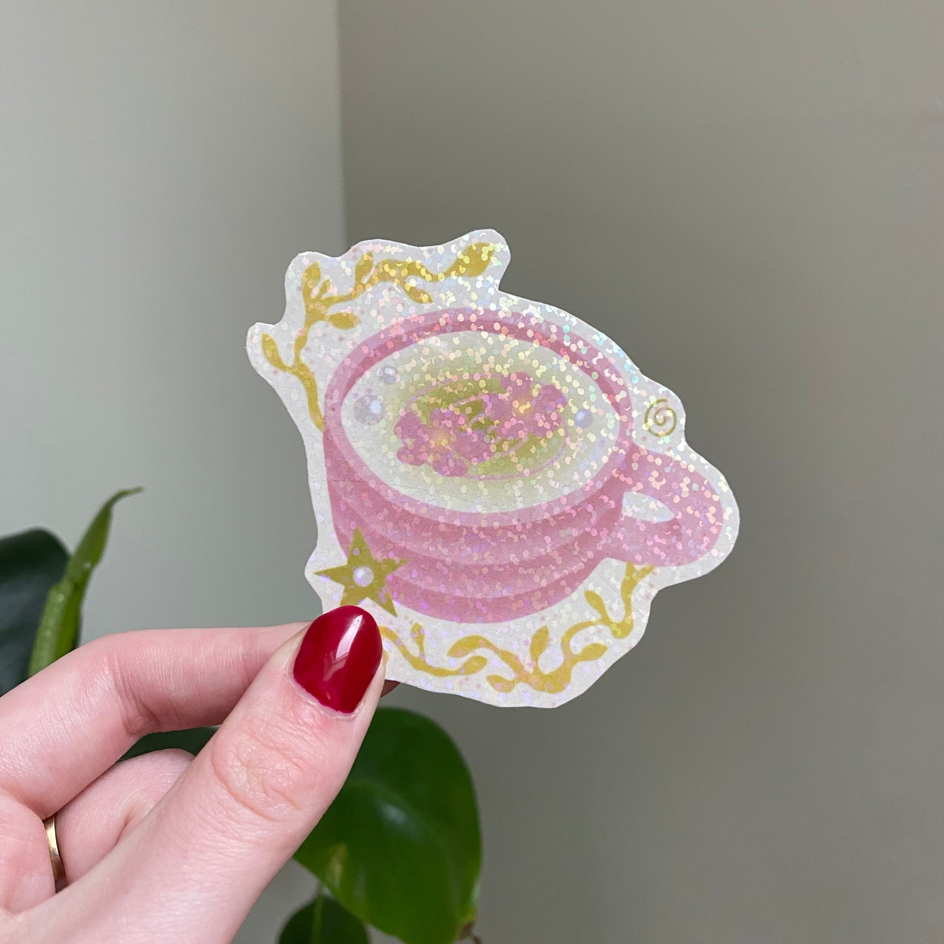 Stickers avec une lamination remplie de petites paillettes holographiques