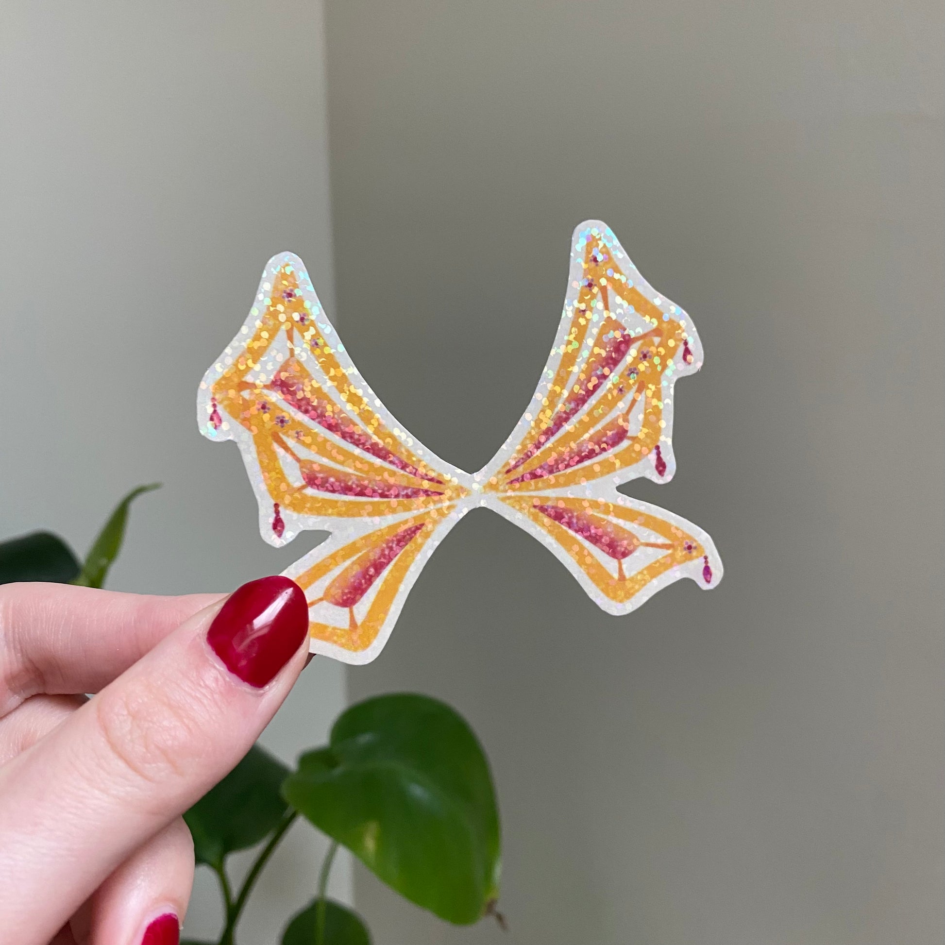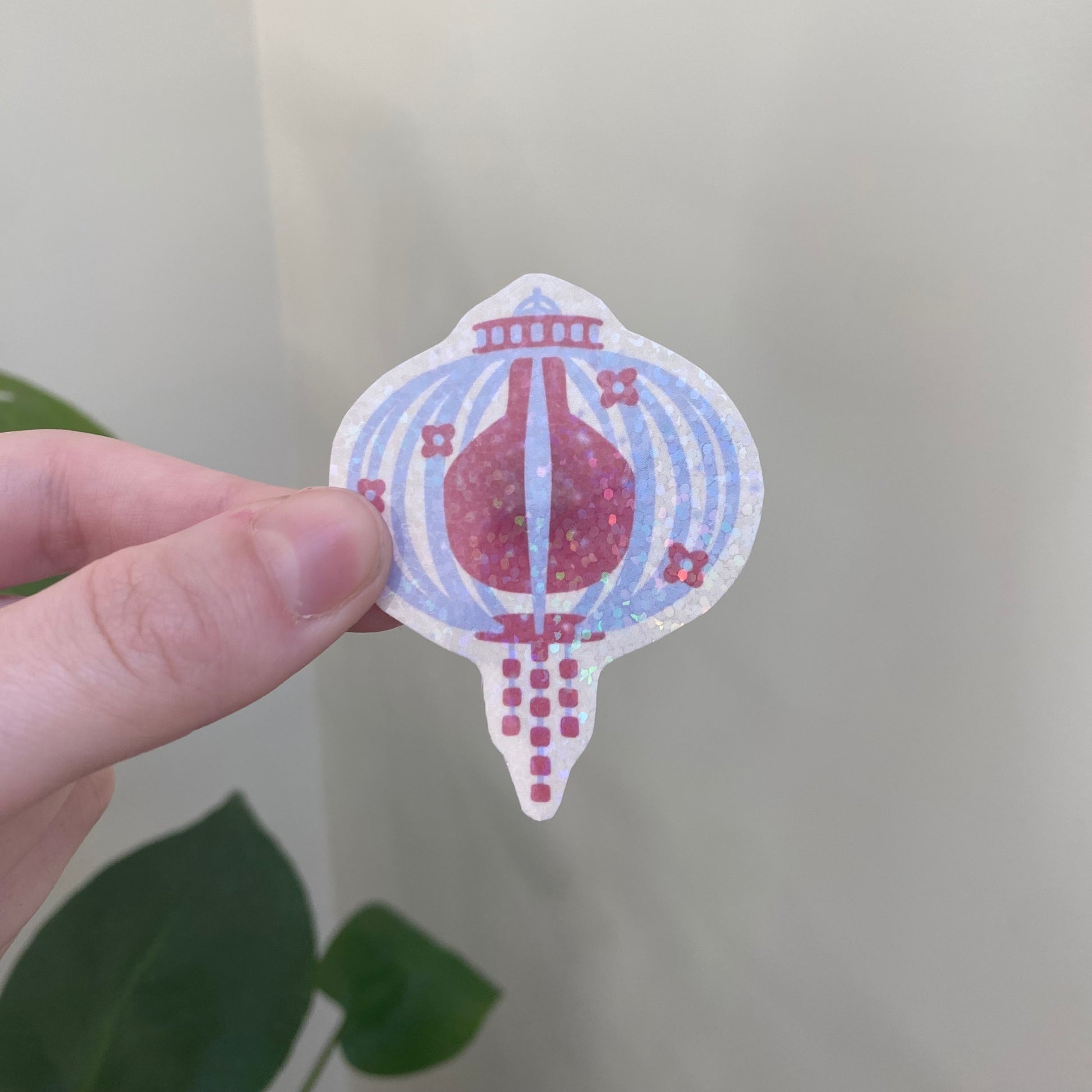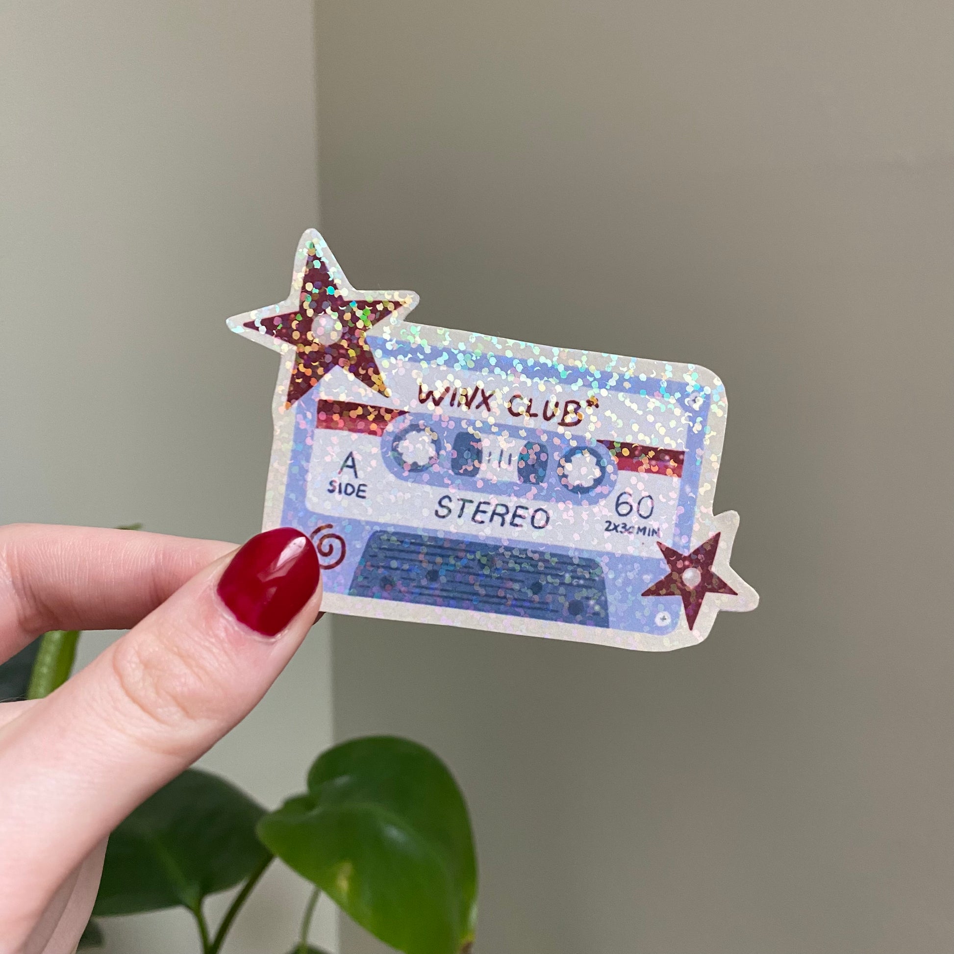 Stickers avec une lamination remplie de petites paillettes holographiques
