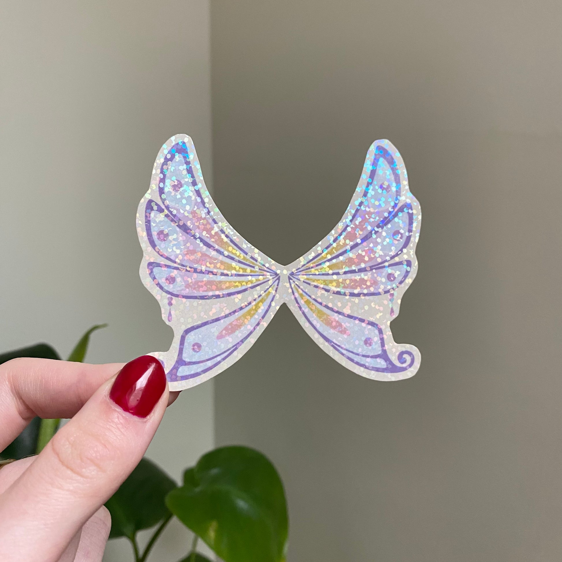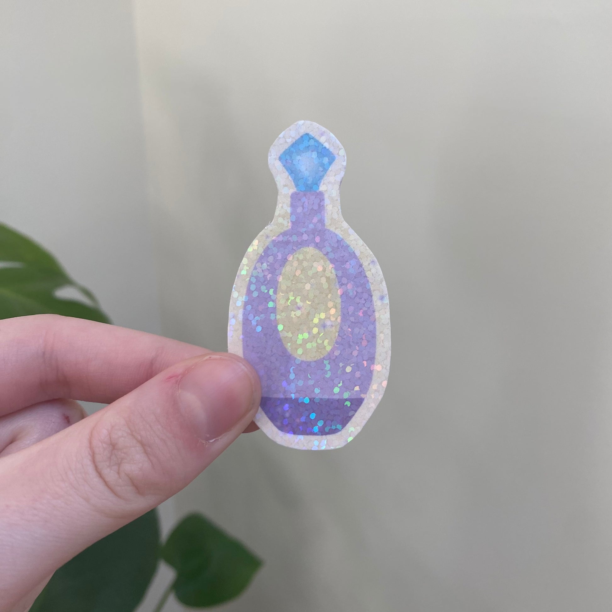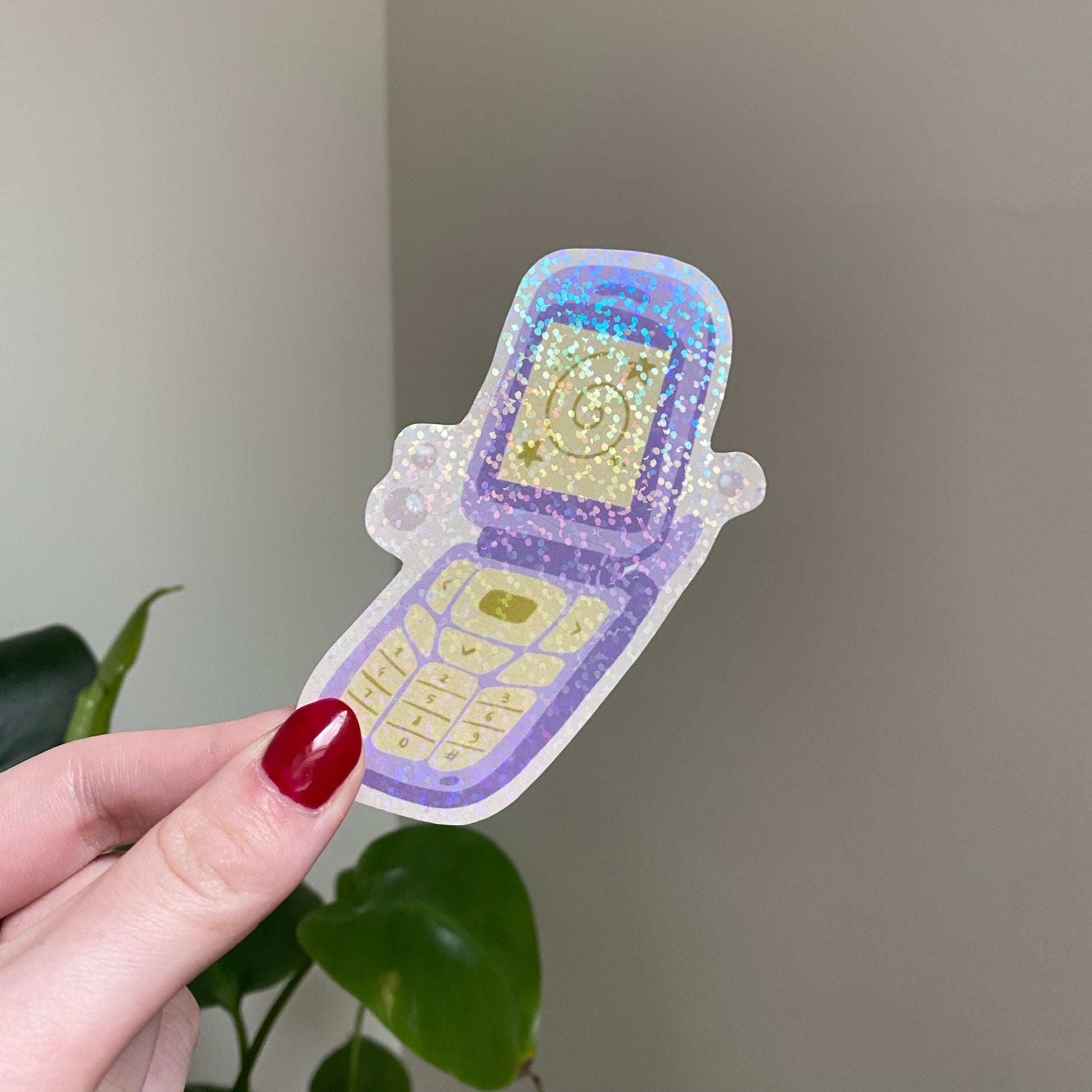 Stickers avec une lamination remplie de petites paillettes holographiques